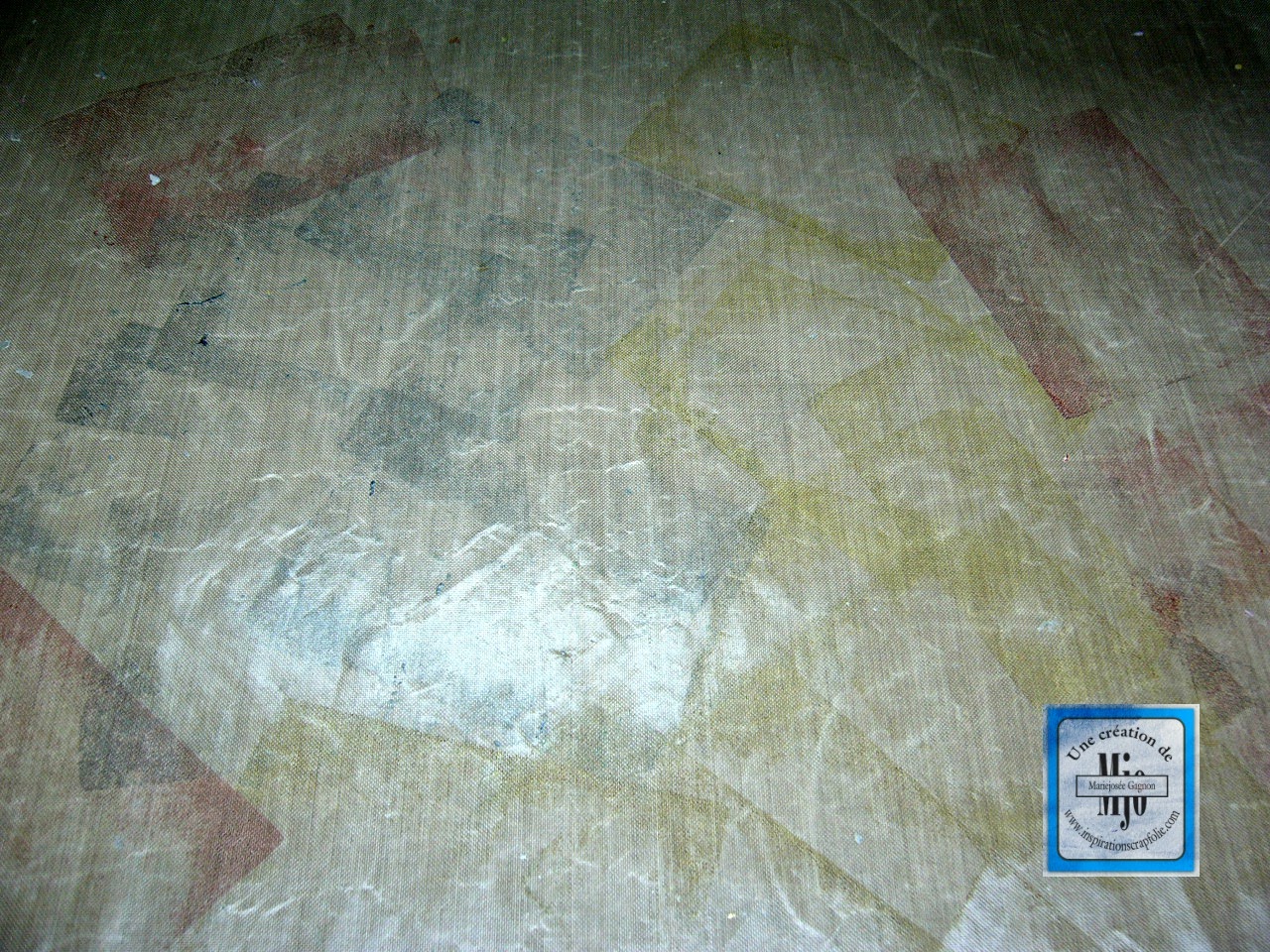 En tout premier lieu étampez directement l'encre sur votre surface lisse comme sur ma photo.